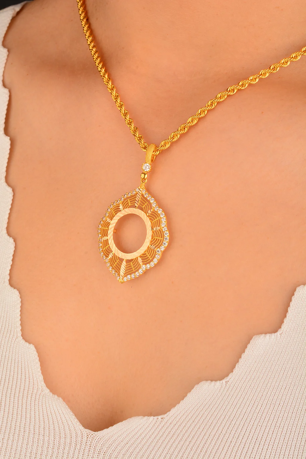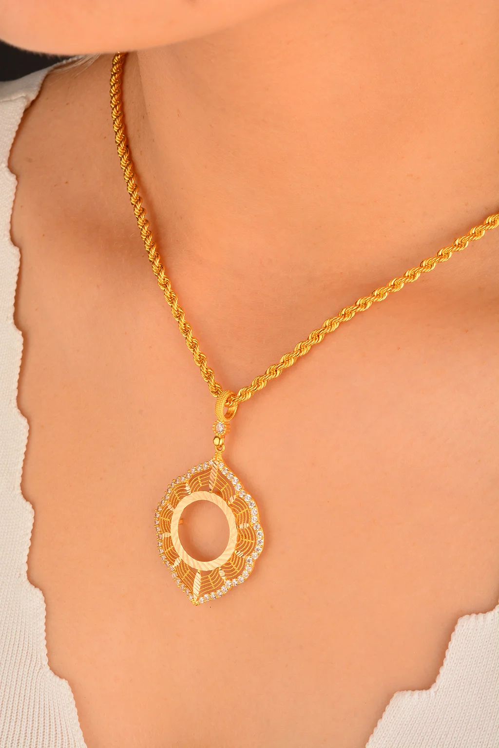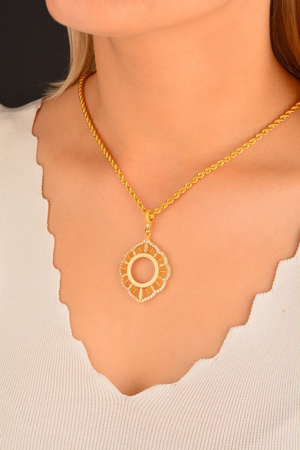 Cebeci 14 Ayar Taşlı Çerçeve Altın Kolye Ucu