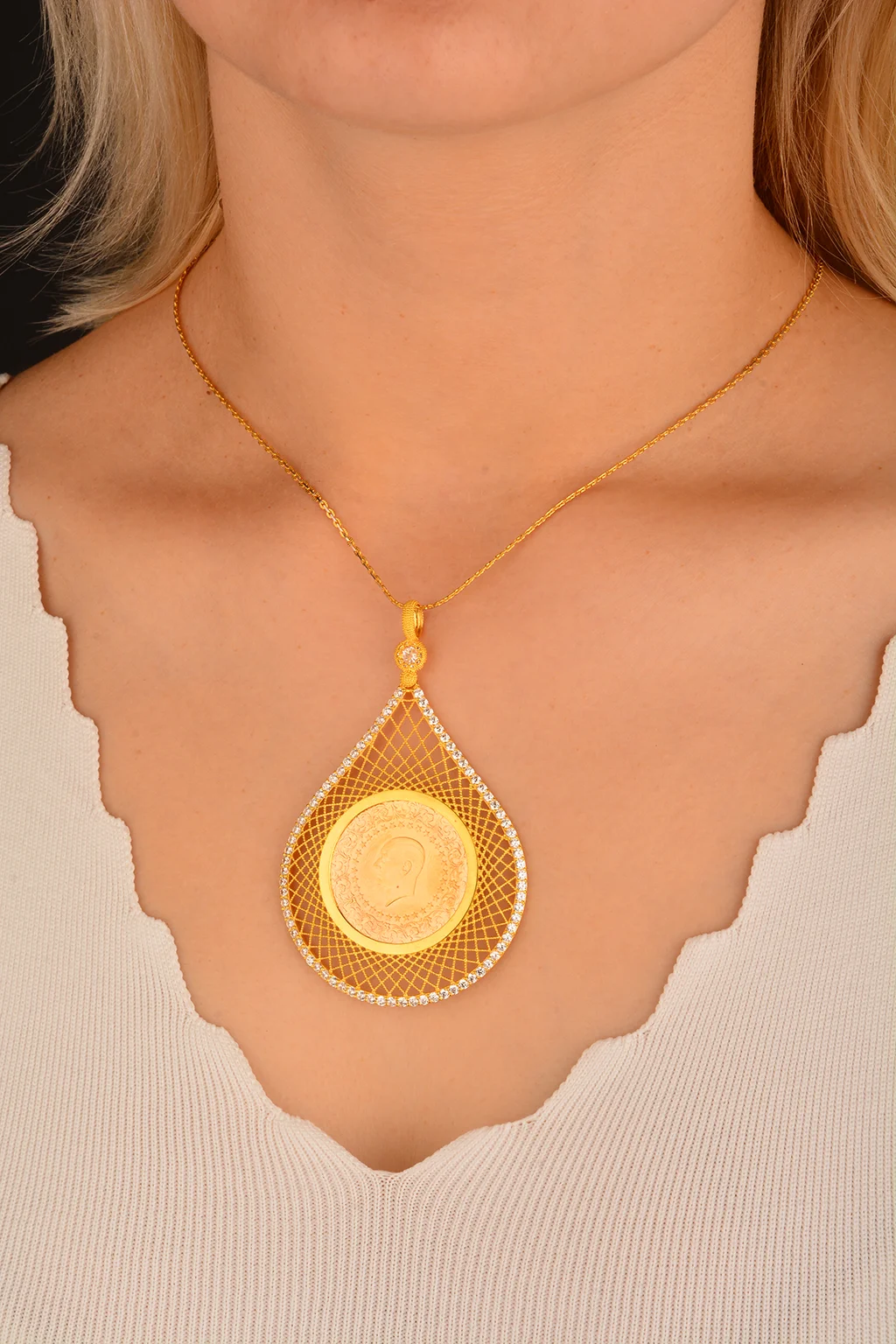 Cebeci 14 Ayar Taşlı Çeyrekli Altın Kolye Ucu