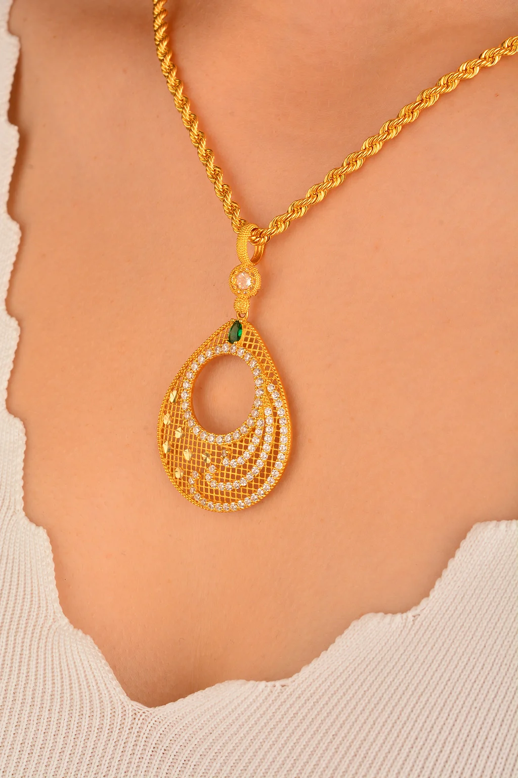 Cebeci 14 Ayar Yeşil Taşlı Çerçeve Altın Kolye Ucu